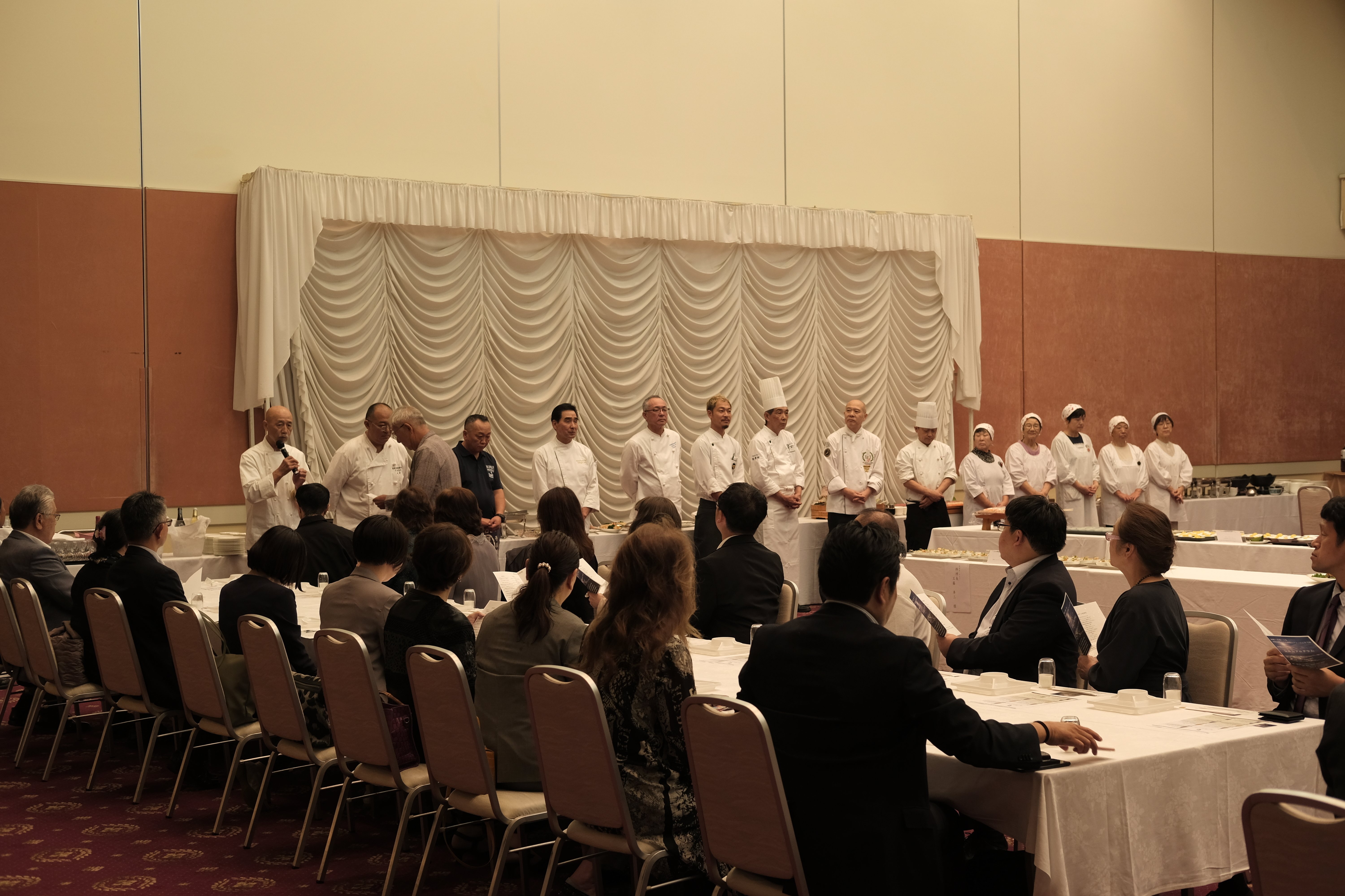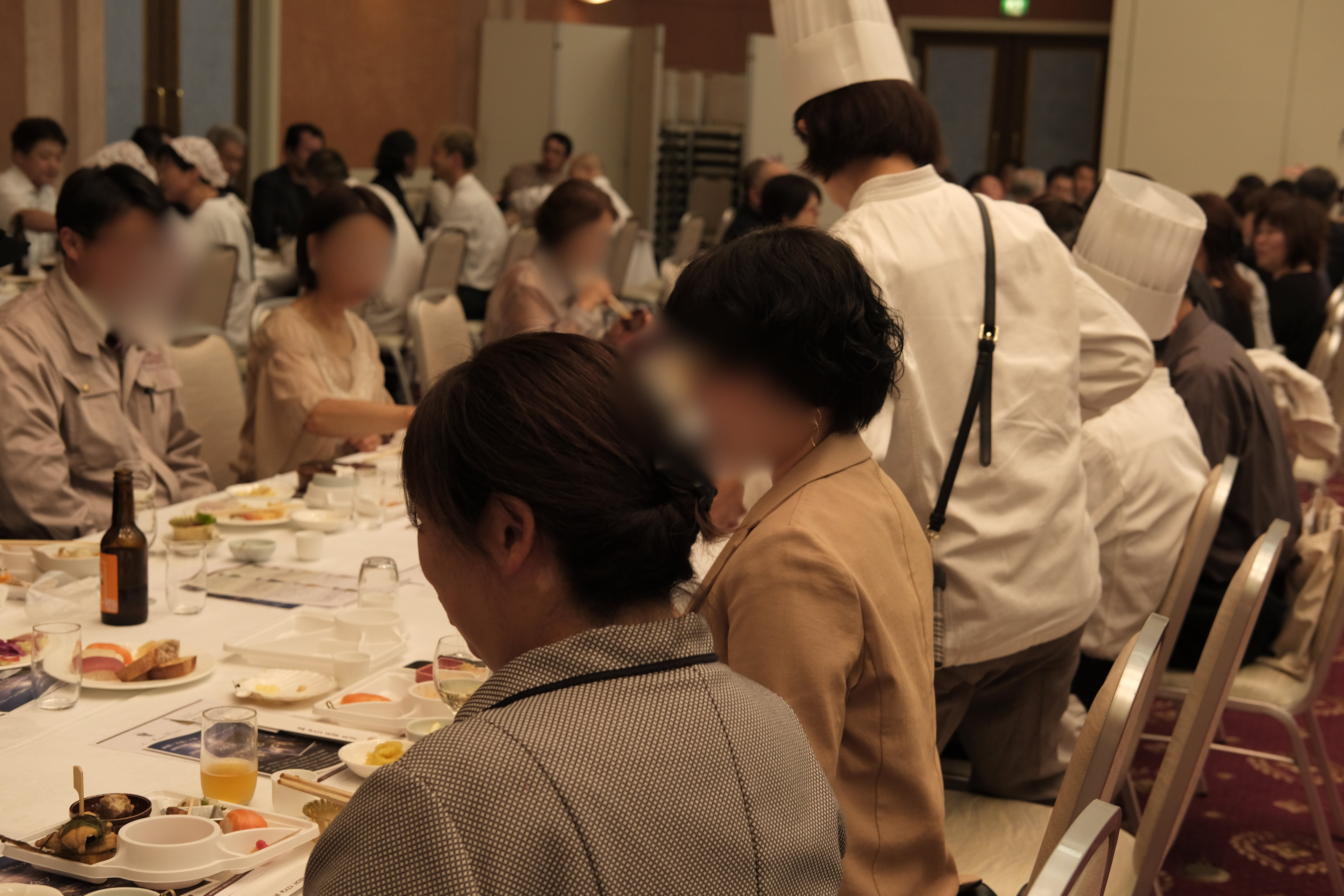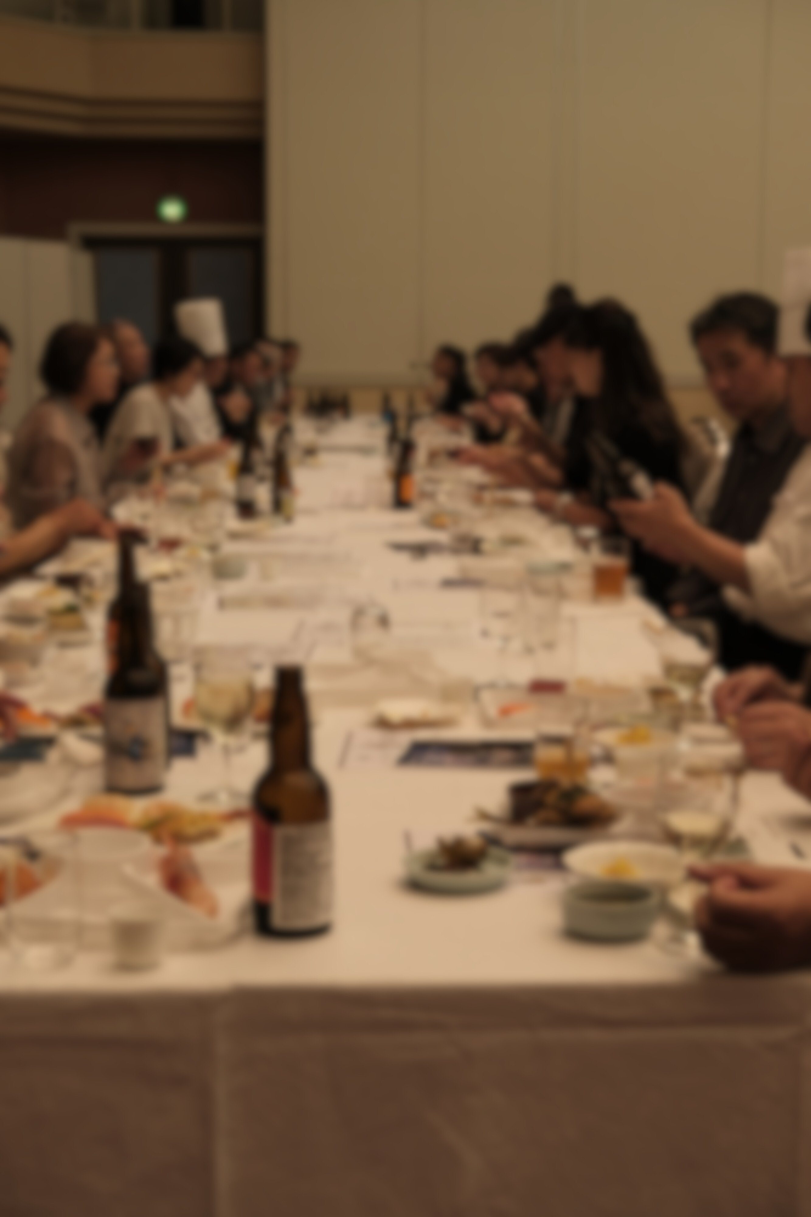 主催の一般社団法人しもきたツーリズム様と開催場所のプラザホテルむつ様のご協力そして料理人の皆様のご理解のおかげで実現したロングテーブル料理人も含め総勢90名近くの人数が食卓を囲みました!