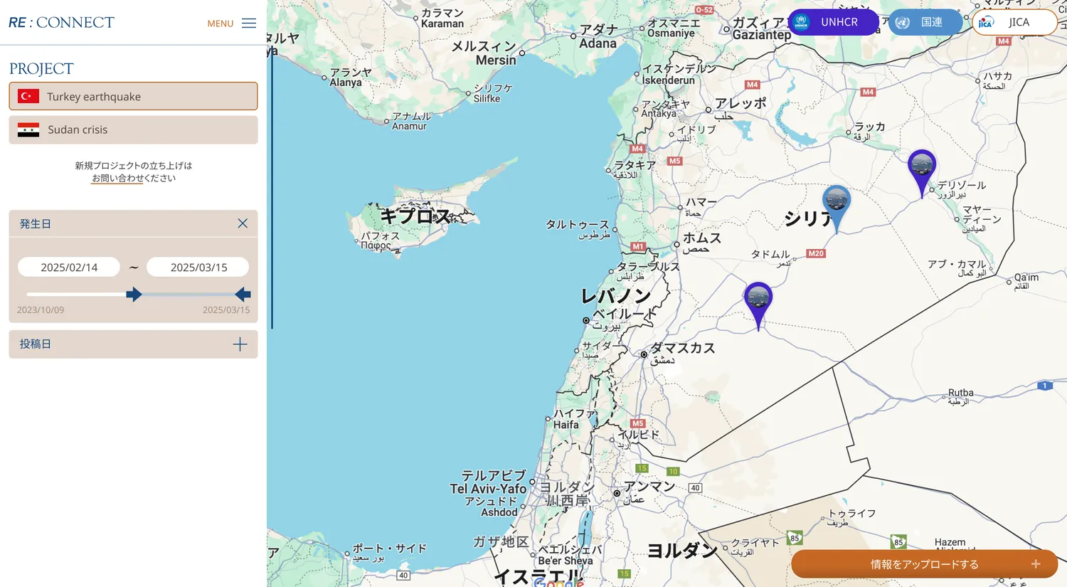 RE:CONNECTは、今後あらゆる組織が国際的に活動するうえで基盤となる可能性を秘めています。世界中で起きる出来事が地図上に、時系列で可視化されることは、あらゆる組織において価値となります。